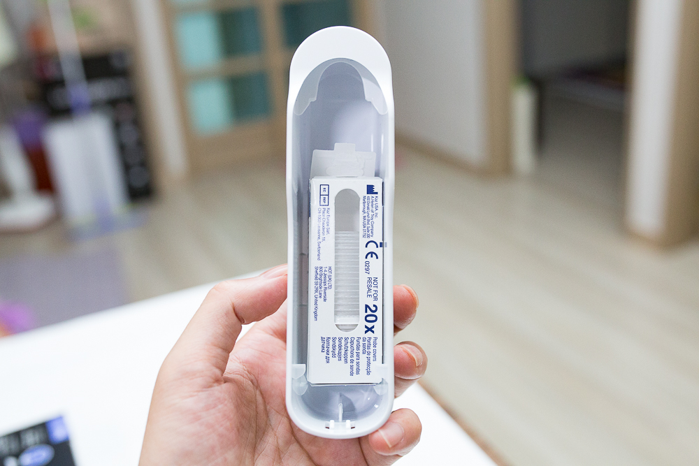 제품의 구성품은 위의 사진과 같습니다. 제가 구입한 것은 하드 케이스, 본품과 필터 그리고 상자로 이루어져 있습니다. 본품인 체온계 케이스를 열면 그 아래에 약간의 공간이 있습니다. 필터 상자를 담아두고 필요할 때 마다 필터를 꺼내쓰면 됩니다. 워낙에 유명한 제품이고 하다보니 제 글이 아닌 다른 곳에서도 충분히 보셨으리라 생각됩니다.