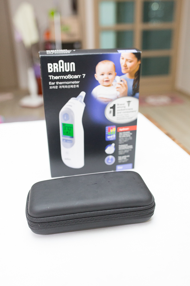일부 지자체에서 신생아 출생신고를 하면 체온계를 동봉한 육아 용품 세트를 선물하는 것으로 알고 있습니다. 선물 세트에 들어 있는 체온계는 브라운 제품과는 달리 비접촉식 체온계로서 대상으로부터 약 5cm 이상 떨어진 지점에서 측정된 값으로 체온을 판단하는 제품입니다. 두 개 모두를 사용해 본 결과 각각 장단점을 가지고 있는 만큼 상황에 맞게끔 사용하면 될 것 같더군요.