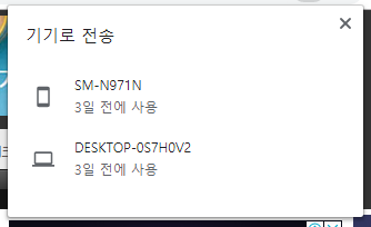 위의 사진은 주소창 우측의 그림을 클릭했을 때, 나타나는 장치의 목록이다. 나의 경우 스마트폰 한 대, 컴퓨터 두 대를 동일한 구글 계정으로 로그인해 둔 상태다.