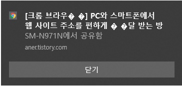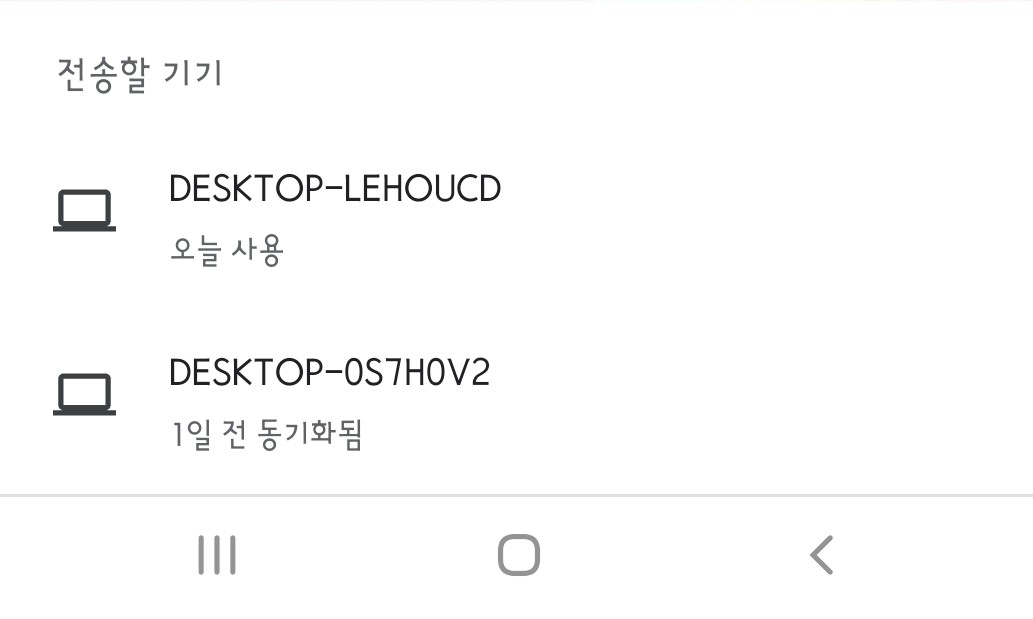 동일한 계정으로 구글에 접속한 장치들이 나타난다. 그중 공유하고자 하는 기기를 선택하면 아래와 같이 공유된 정보가 알림창을 통해서 사용자에게 전달된다.