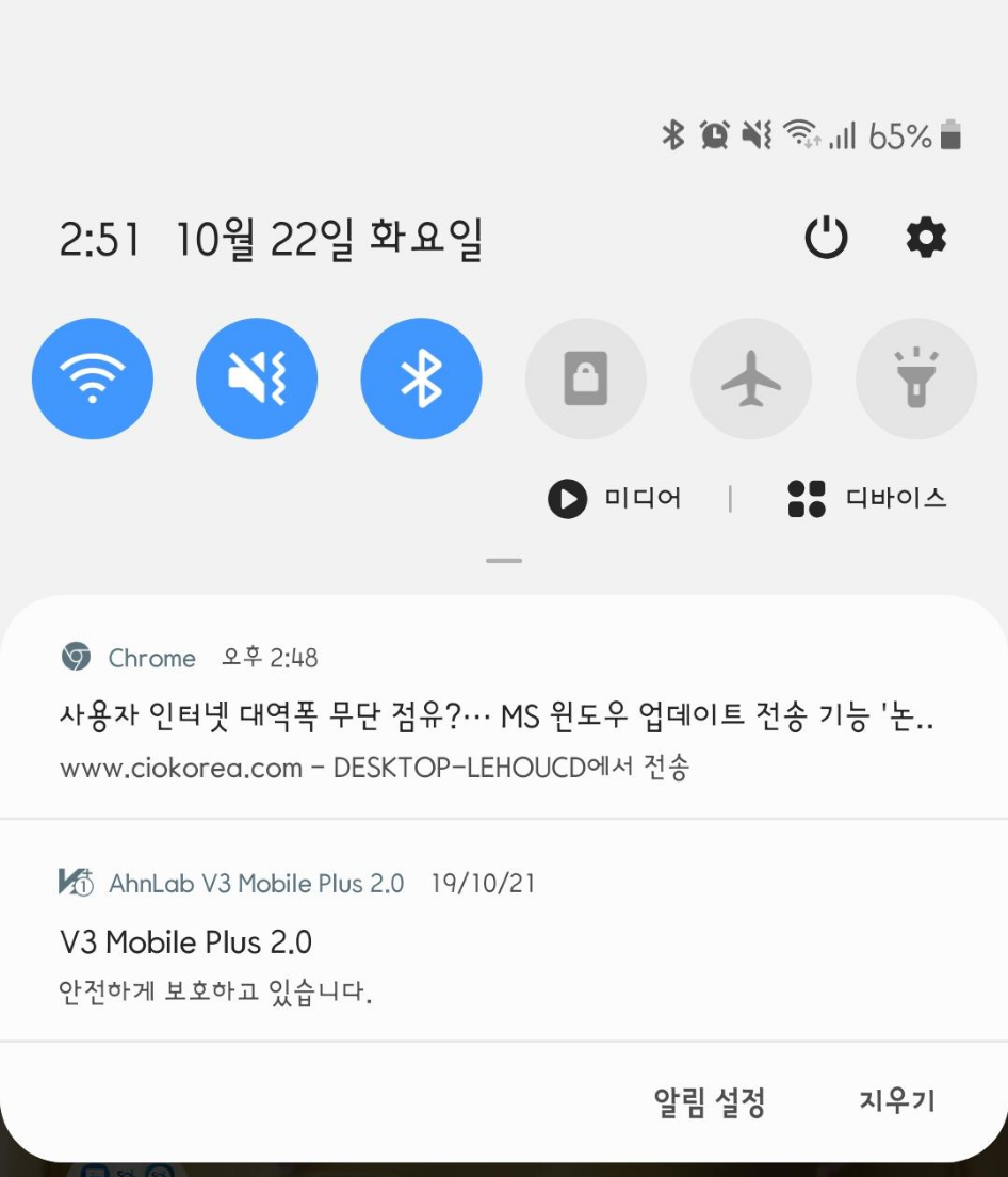 전송할 기기를 선택하게 되면 위와 같은 알림이 화면 우측 하단에 나타난다. 위의 알림은 윈도우 10에서 제공하는 알림 기능이다.