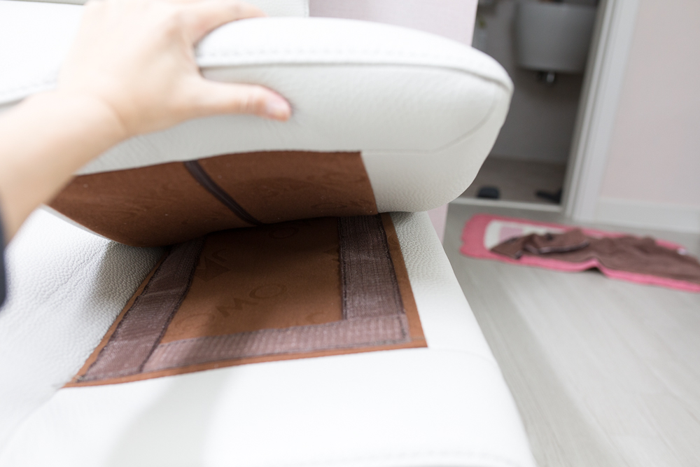 제품 대부분의 부분이 천연면피 소가죽으로 이루어졌다. 사람의 몸이 닿지 않는 바닥과 뒷면은 인조 PVC 가죽으로 구성된 제품이다. 제품의 모든 부분이 천연가죽인 제품을 구입하려면 돈이 더 많이 들어갈 것은 인지상정. 굳이 몸이 닿지도 않은 곳에까지 훨씬 비싼 금액을 들여가며 구입할 생각은 없었다.