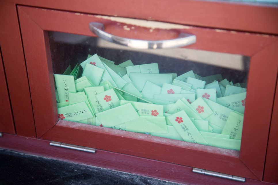 아내와 나의 것을 각자 하나씩 뽑기로 했다. 동전 투입구에 200엔을 넣고 하나씩 집어 들고 눈에 익은 한자가 없는지 살폈다. '大吉'이 가장 좋은 운수라는 걸 어느 블로그가 소개해둔 글에서 읽은 적이 있다.