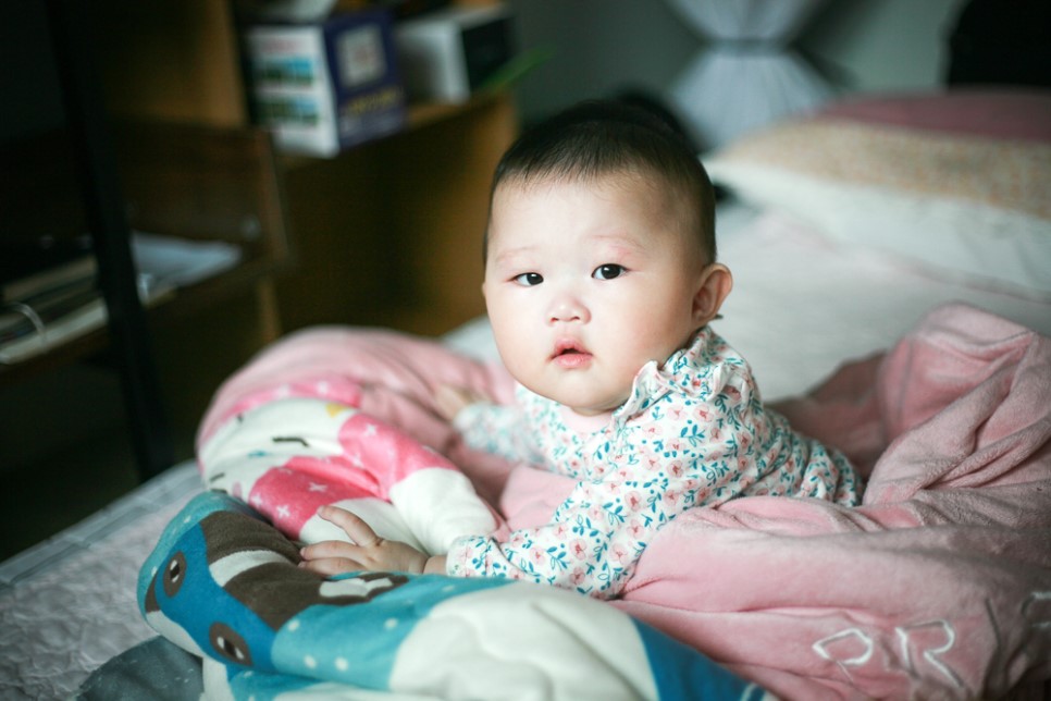 아이가 입고 있는 내복과 이불이 절묘하게 어울린다. 전체적인 사진의 색감은 물론이고 나와 쏙 빼닮은 아이의 모습에서 칠십 년대의 풍미를 느낄 수 있을 정도다.