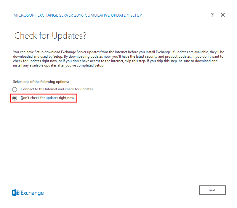 1. Don't check for updates right now 를 선택하고 다음을 클릭한다.
