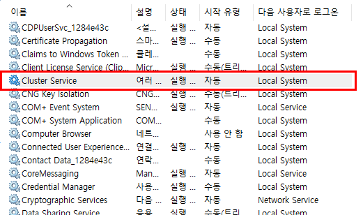 6. 클러스터 서비스가 자동으로 실행된 것을 확인한다.