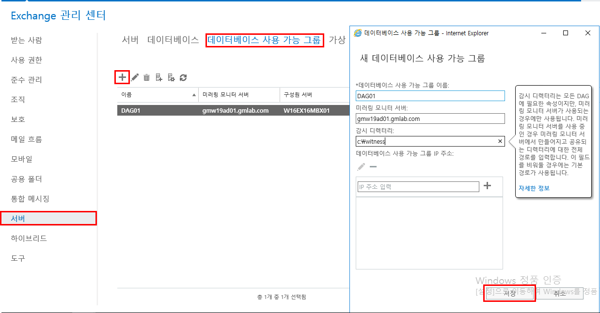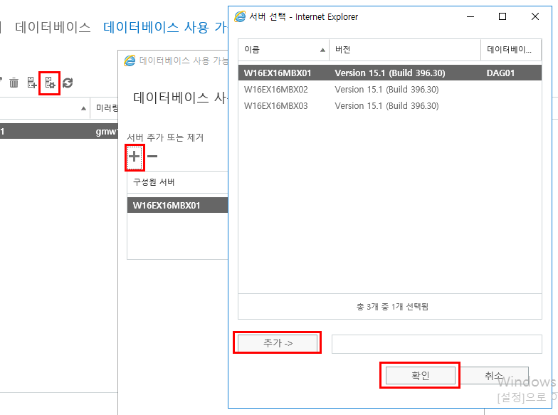 Add-databaseavailabilitygroupserver 추가 (exchange)