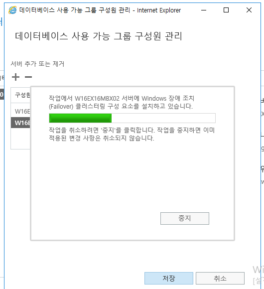 5. DAG 구성 및 구성원 추가를 하면 Windows 장애 조치(Failover) 클러스터 관리자를 설치하는 과정을 거친다.