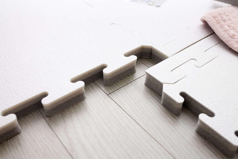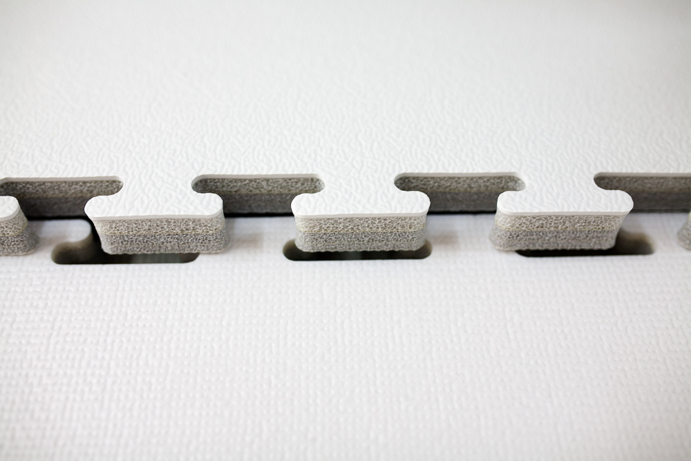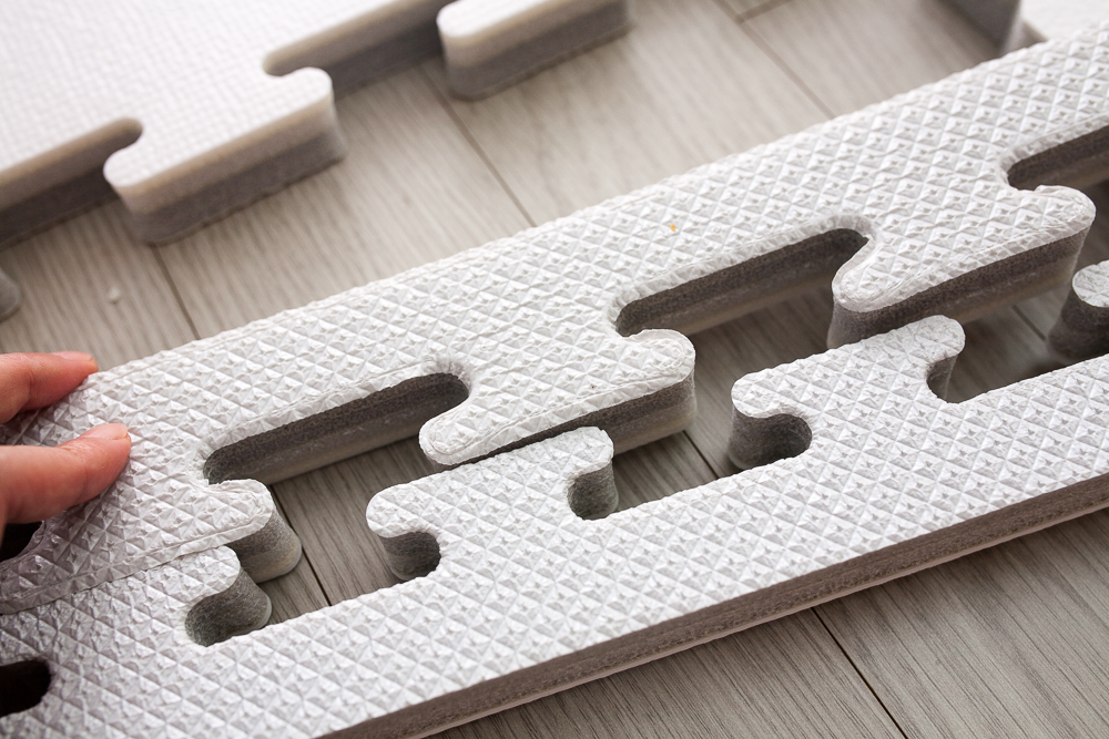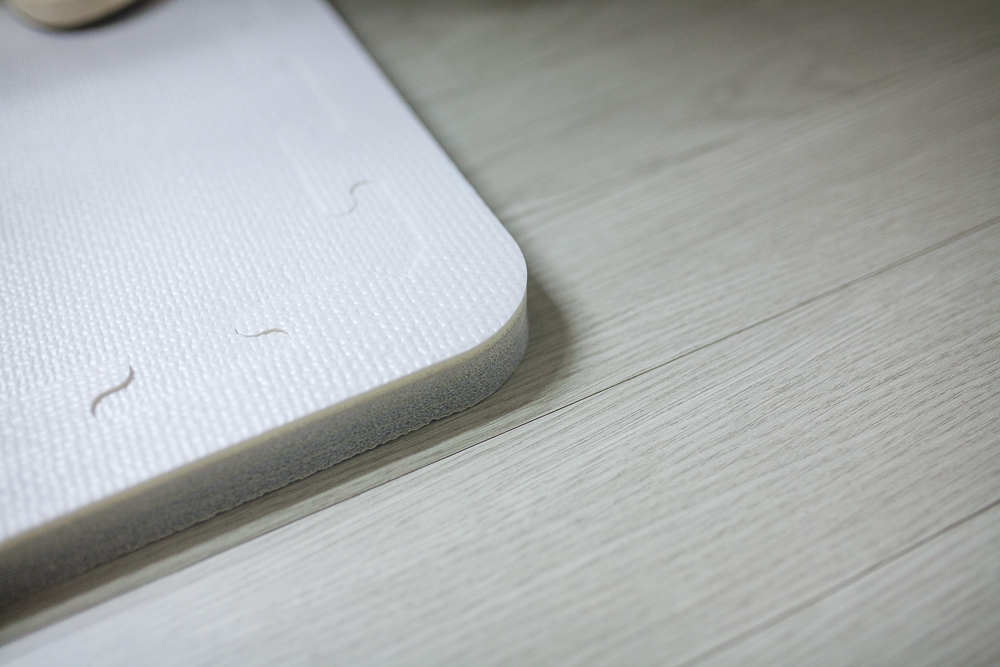이 제품의 장점 중 하나로 꼽자면, 여러 개의 매트를 퍼즐 형태로 꽂아서 쓸 수 있다는 점이다. 이사를 가거나 가구의 재배치 등으로 공간이 재구성될 때, 추가로 매트를 사서 이어 붙일 수 있다.
