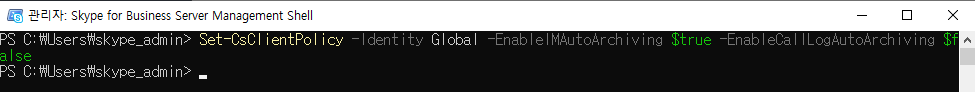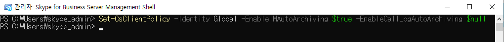 제어판에서 메신저 대화 및 웹 회의 세션 보관을 적용했으나, 클라이언트에는 변화가 없다. 오로지 파워셸 명령어를 통한 정책만 적용되고 있다. 어쩌면, 제어판 구성과 파워셸 구성과 목적과 결과 자체가 다르게 디자인되어 있을 수 있겠다는 생각이 든다.