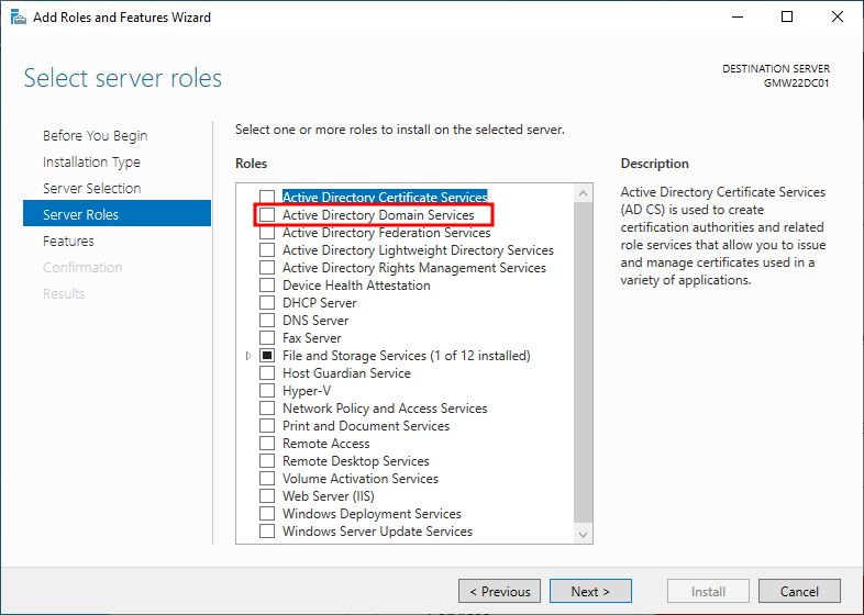 5. Active Directory Domain Services에 체크한다.