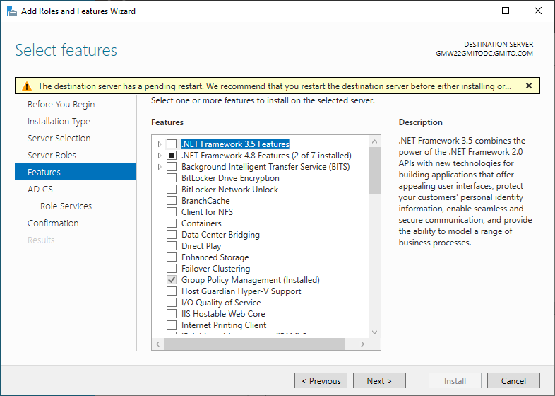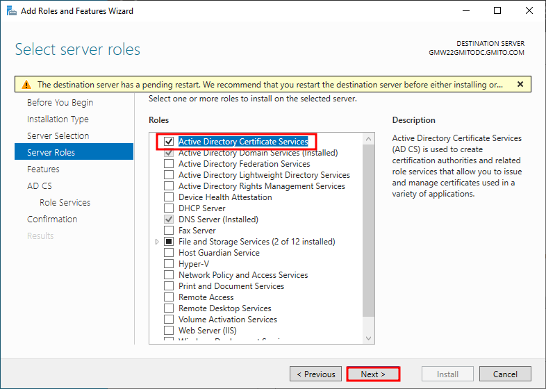 5. 아래 화면과 같이 Active Directory 인증서 서비스를 선택한다.