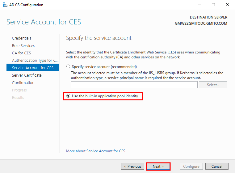 16. 본 과정에서는 이미 생성된 기본 계정으로 CA 서비스를 운용할 것이다. 별도의 서비스 계정 운용이 권장되기는 하지만, 편의상 생략한다.