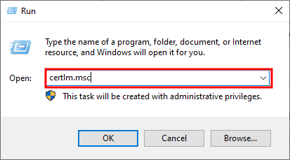 8. 명령어 실행창에서 certlm.msc를 입력 후, 실행한다.
