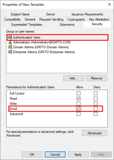 15. 선택된 인증서 템플릿을 등록한다.