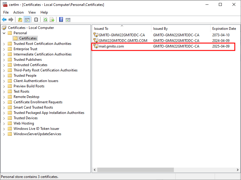 17. certlm.msc 콘솔에 인증서가 설치된 것을 확인할 수 있다.