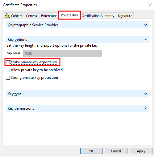14. 보안 키 탭에서는 아래와 같이 선택한다.
