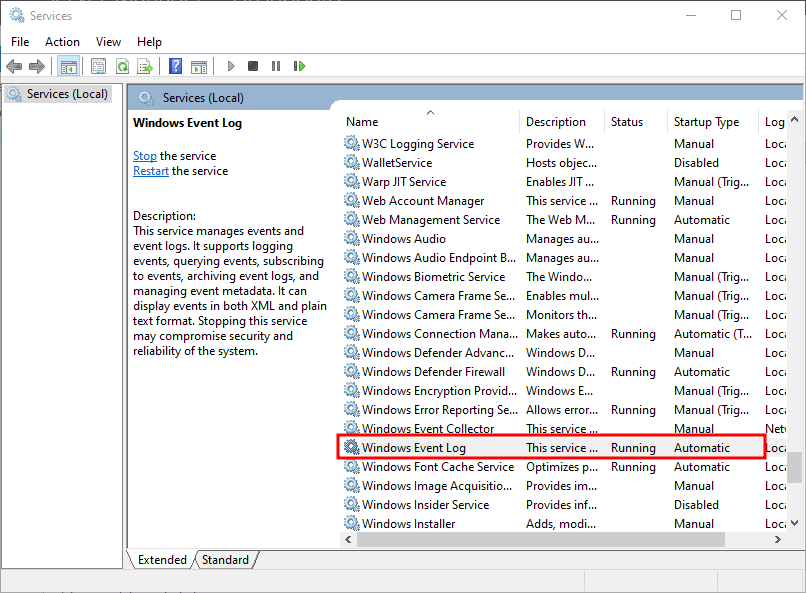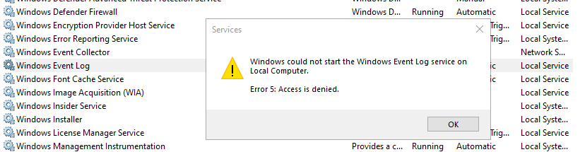 윈도우 이벤트 로그 서비스 재시작 에러