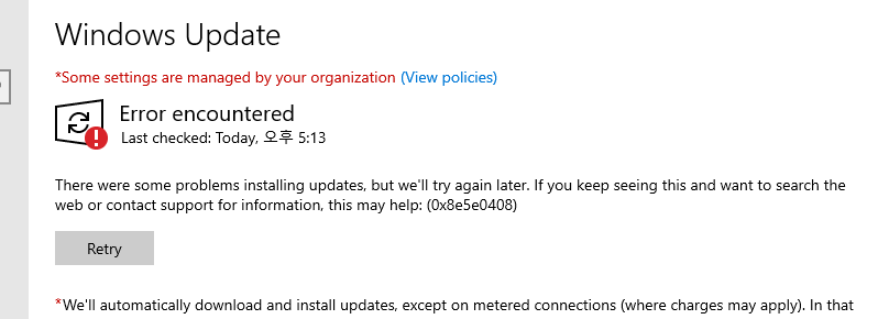 윈도우 서버의 보안 업데이트를 진해하려고 했더니, 위와 같은 오류가 발생했다. 오류 코드는 0x8e5e0408이고, 원인을 파악해 보니, 윈도우 이벤트 로그 서비스에 문제가 있어서였다.