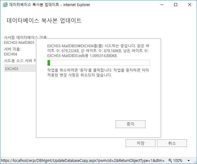 이럴 경우, 언제나 eseutil /mh 옵션을 사용해서 해당 데이터베이스의 헤더 파일을 읽고, 현재의 상태를 진단하는 것이 필수적이다. 스크린샷은 찍지 않았기 때문에 예제 화면은 없다. 결과는 다행스럽게도 Clean Shutdown.